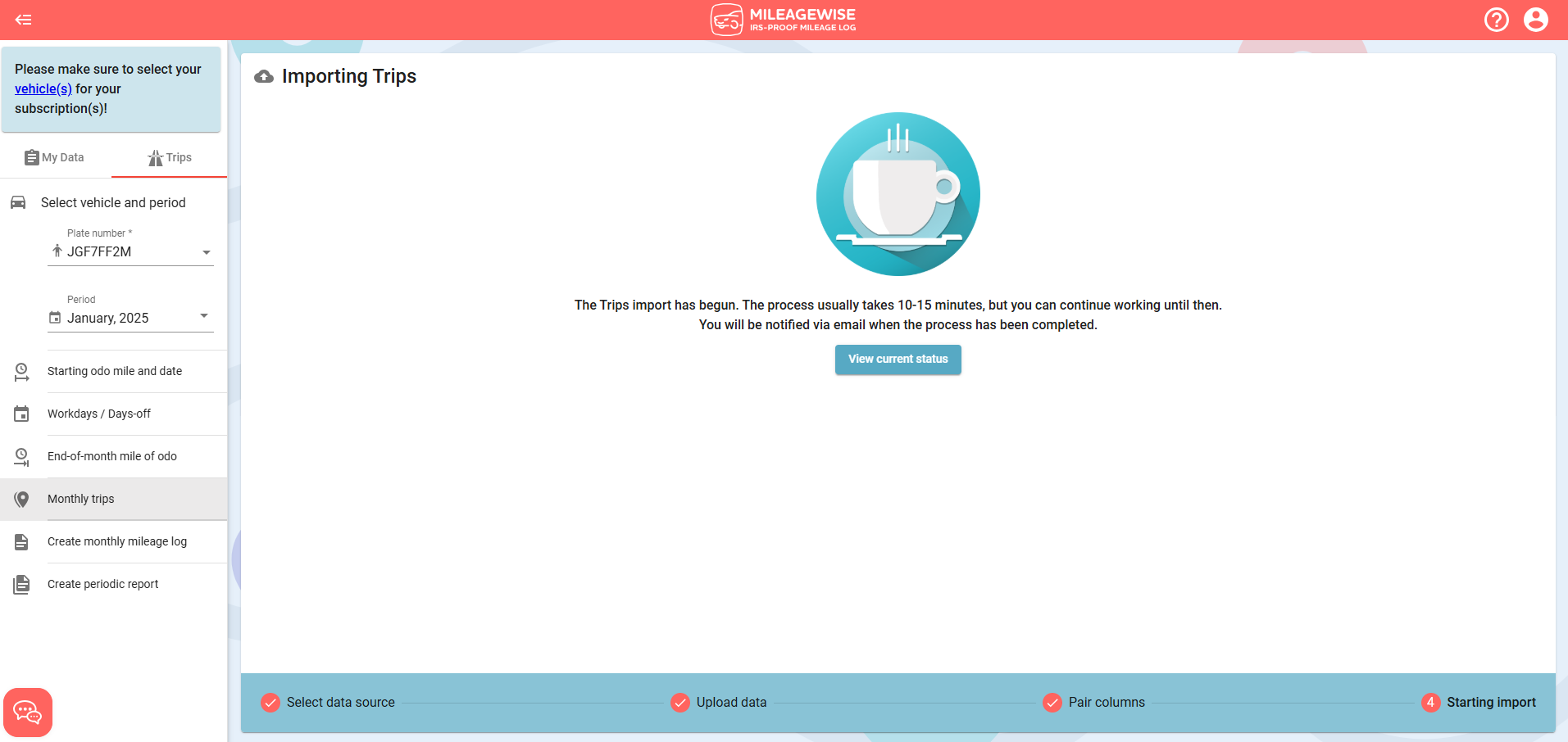 - If you use your MileageWise account with multiple users, all users except "mobile app" users can import fixed trips. Notification of successful import will be received by the Administrator.