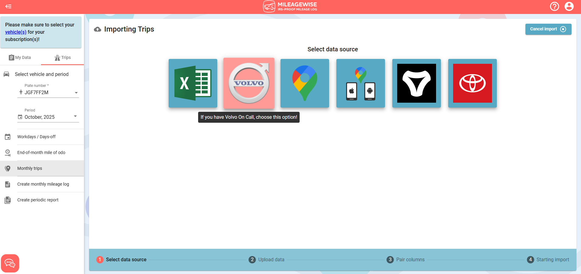 Importing fixed trips from the Volvo On Call app