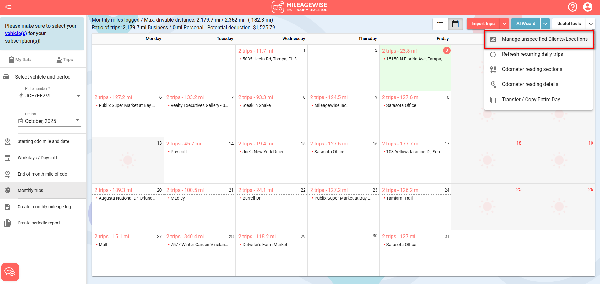 - When preparing your mileage logs for printing, the system will provide a warning if any clients or locations remain unnamed. This prevents you from finalizing a mileage log with incomplete data and ensures your log is accurate for IRS purposes.